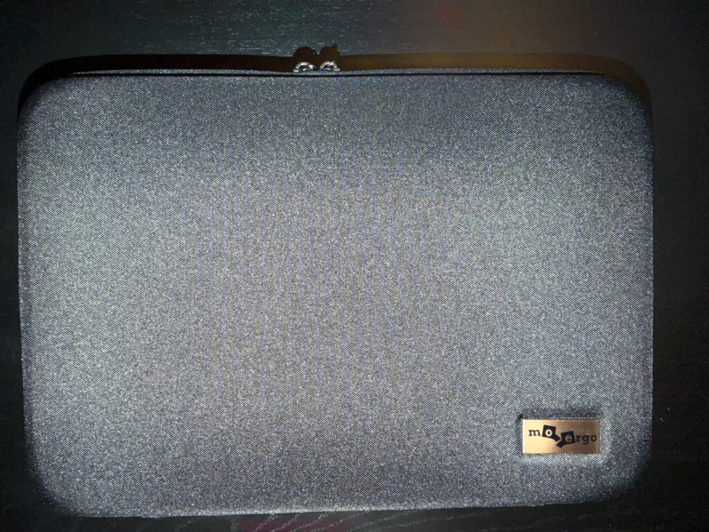 The texture is dry, grippy, and appears water-repellent. Fingerprints and dust hardly show, which matters when you frequently slide the case in and out of backpacks. In one corner sits a small metal badge with the moErgo logo – understated, but high quality.
