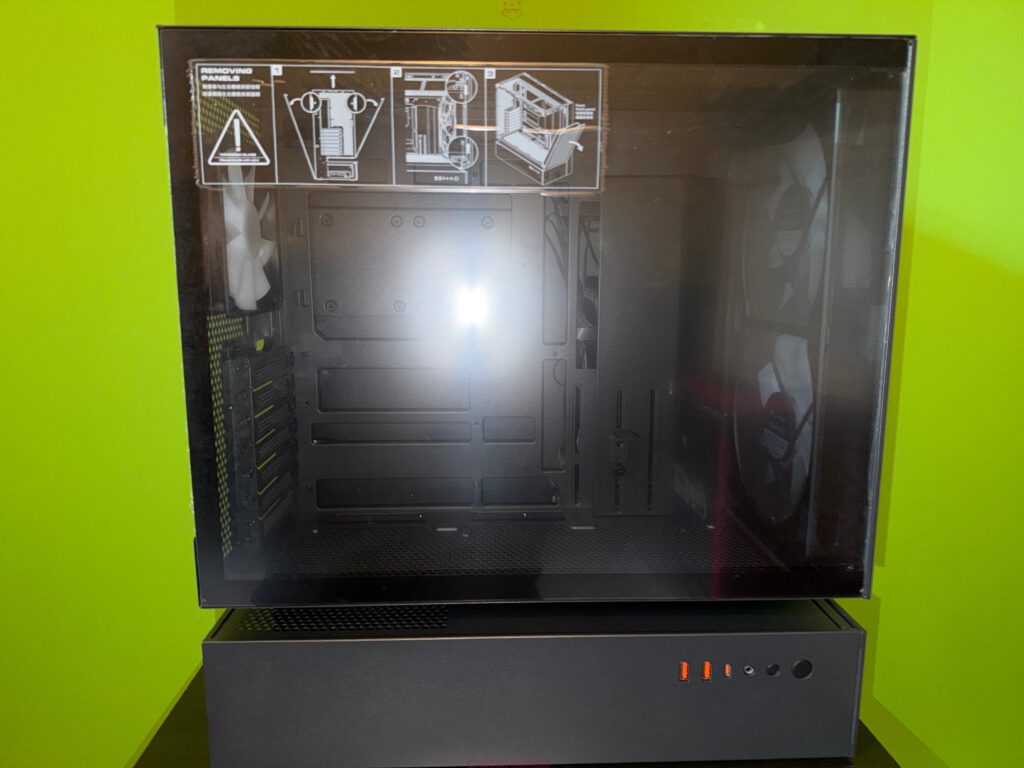 With the upper chamber raised, installing an ATX board is easy. Removing the front fan module gives even more room if needed.