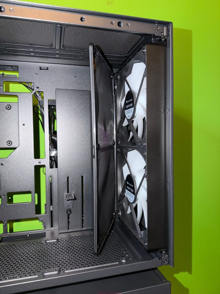 The only minor inconvenience: the front filter is behind the fans, not in front. Cleaning requires opening the side panel rather than just pulling a front tab. Not a major flaw, just slightly less convenient than some competitors.