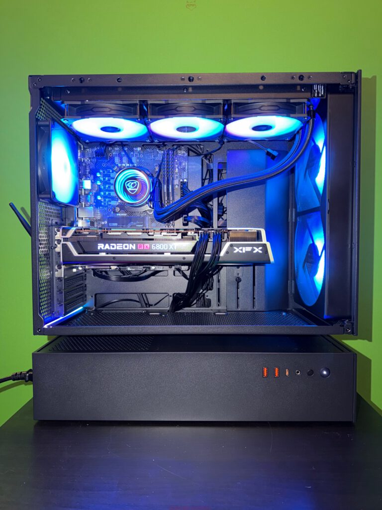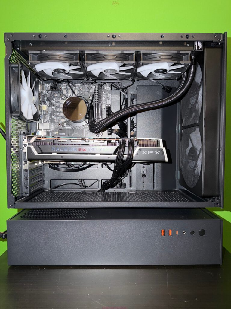 This separation prevents PSU heat from entering the main chamber and gives GPU and CPU unrestricted airflow.
