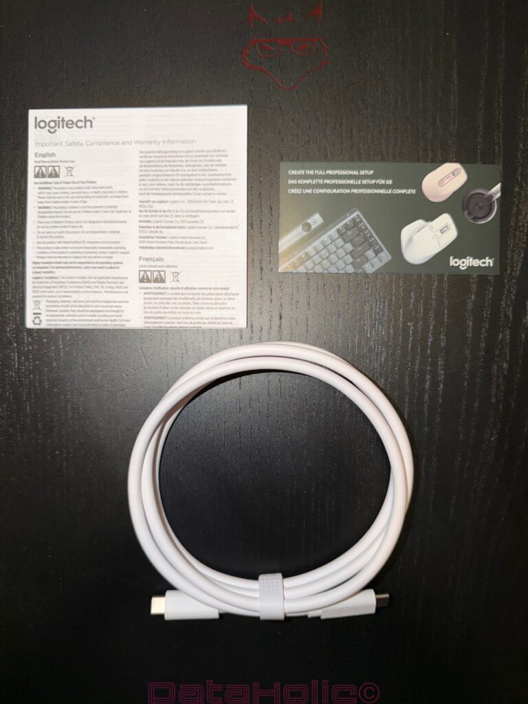 Ein besonders dankbarer Teil jedes Unboxings ist jener Moment, in dem sich zeigt, ob ein Hersteller beim Zubehör mitgedacht oder nur die Excel-Tabelle angebetet hat. Die MX Brio liefert an dieser Stelle keinen großen Paukenschlag, aber etwas deutlich Wertvolleres: Vernunft. Im Karton liegen Sicherheitsunterlagen, ein Werbekärtchen für weitere Logitech-Produkte und vor allem das, was sofort relevant ist: das USB-C-auf-USB-C-Kabel.