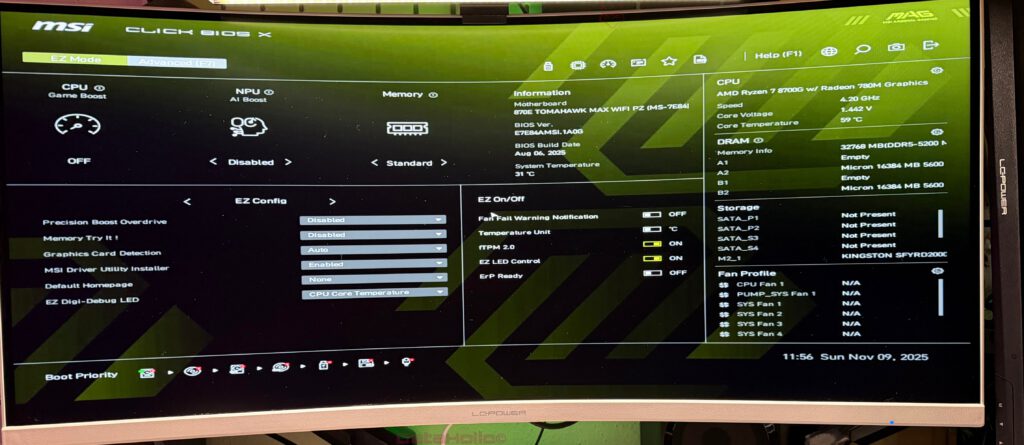 Der EZ Mode ist bewusst für den Moment nach dem ersten Einschalten gedacht: System läuft, Windows ist noch nicht installiert, und man möchte möglichst schnell die grundlegenden Weichen stellen.