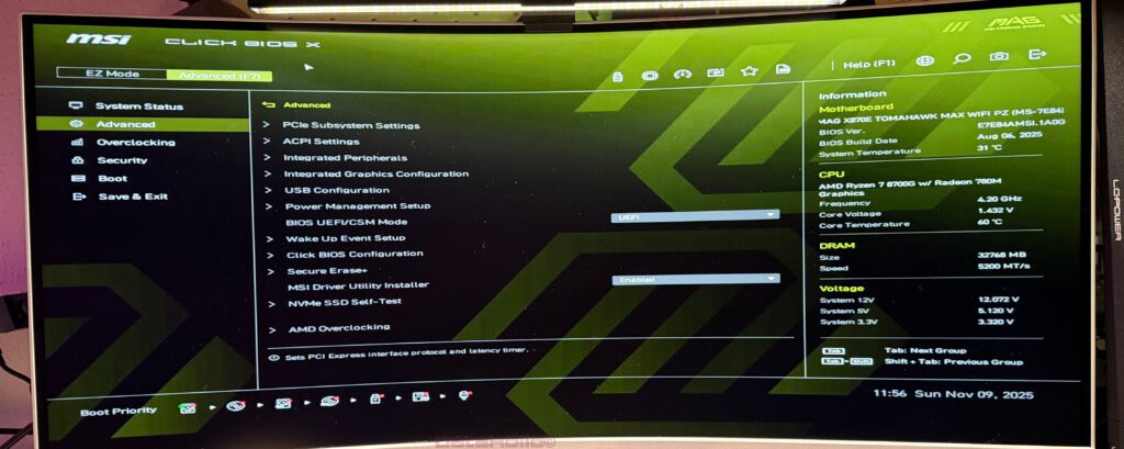 • Wer irgendwann tiefer eintaucht, findet im Advanced Mode alle Stellschrauben, die man von einer X870E-Plattform erwartet – ohne dass Einsteiger im Alltagsbetrieb davon erschlagen werden.