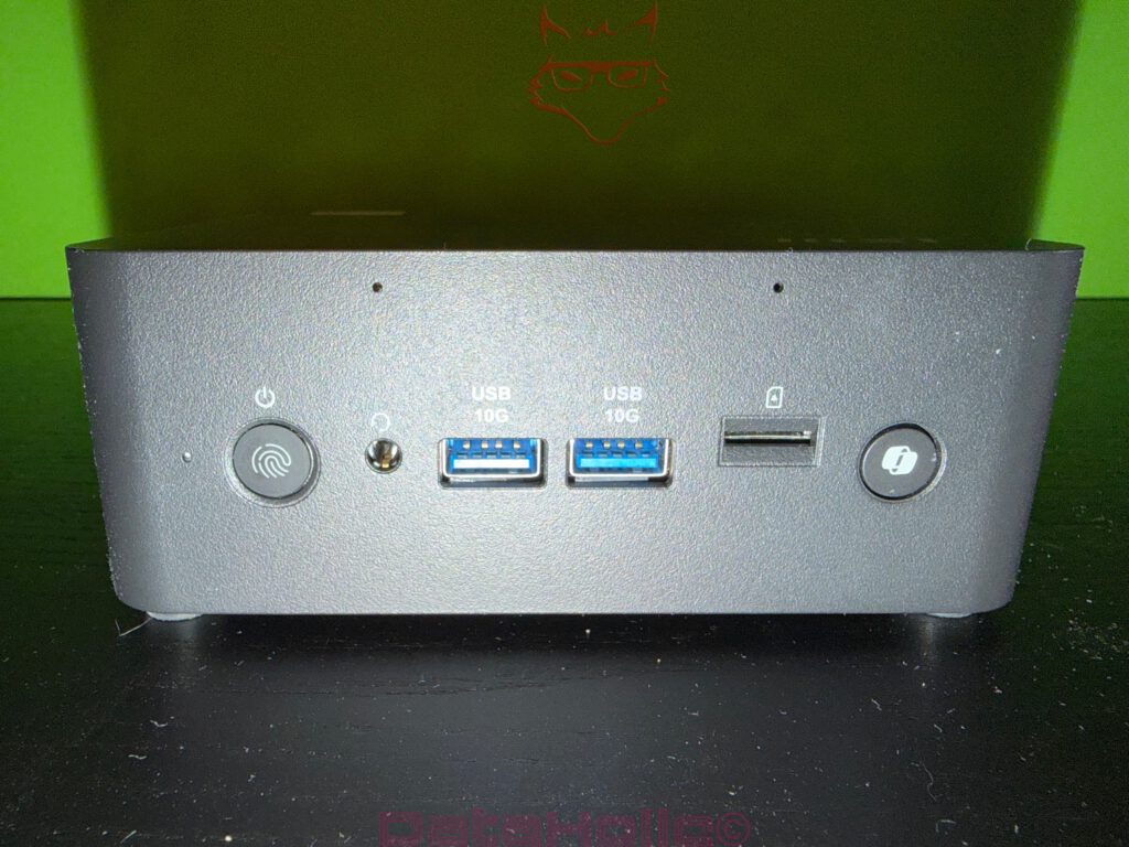 Die Front des Cubi NUC AI+ zeigt sehr schön, wie MSI Funktion priorisiert, ohne die Bedienung uncharmant werden zu lassen. Links sitzt der Power-Button mit integriertem Fingerabdrucksensor, daneben die Audio-Kombibuchse, zwei USB-A-Ports mit 10 Gbit/s, ein Micro-SD-Kartenleser und rechts ein separater Copilot-Knopf. Diese Anordnung ist praktisch und zeitgemäß. Gerade an der Front sind schnelle USB-A-Ports sinnvoller als ein abstrakter Purismus zugunsten alleiniger USB-C-Optik. Wer mit USB-Sticks, Authentifizierungsdongles, kleinen SSDs oder drahtlosen Empfängern arbeitet, kennt das tägliche Theater mit Adaptern zur Genüge. Der Cubi NUC AI+ spart sich dieses Schauspiel. Er bietet schnelle Ports dort, wo sie unmittelbar gebraucht werden. Der Kartenleser ergänzt diese Front um eine Funktion, die in vielen Business-Geräten grundlos eingespart wird und im Alltag dann plötzlich schmerzlich fehlt.
