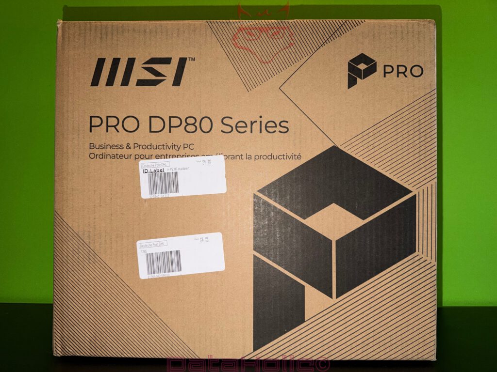 Die PRO-DP80-Serie ist laut MSI als kompakter 8-Liter-Desktop für Business- und Produktivitätsumgebungen positioniert. Je nach Modellvariante reicht das Spektrum bis zu Intel-Core-i7-Prozessoren der 14. Generation, bis zu 64 GB DDR5-Arbeitsspeicher, Dual-LAN, Kartenleser und weiteren Anschlüssen, die klar auf ernsthafte Arbeitsplätze zielen. Genau diese nüchterne Grundidee spiegelt sich bereits im Karton wider.