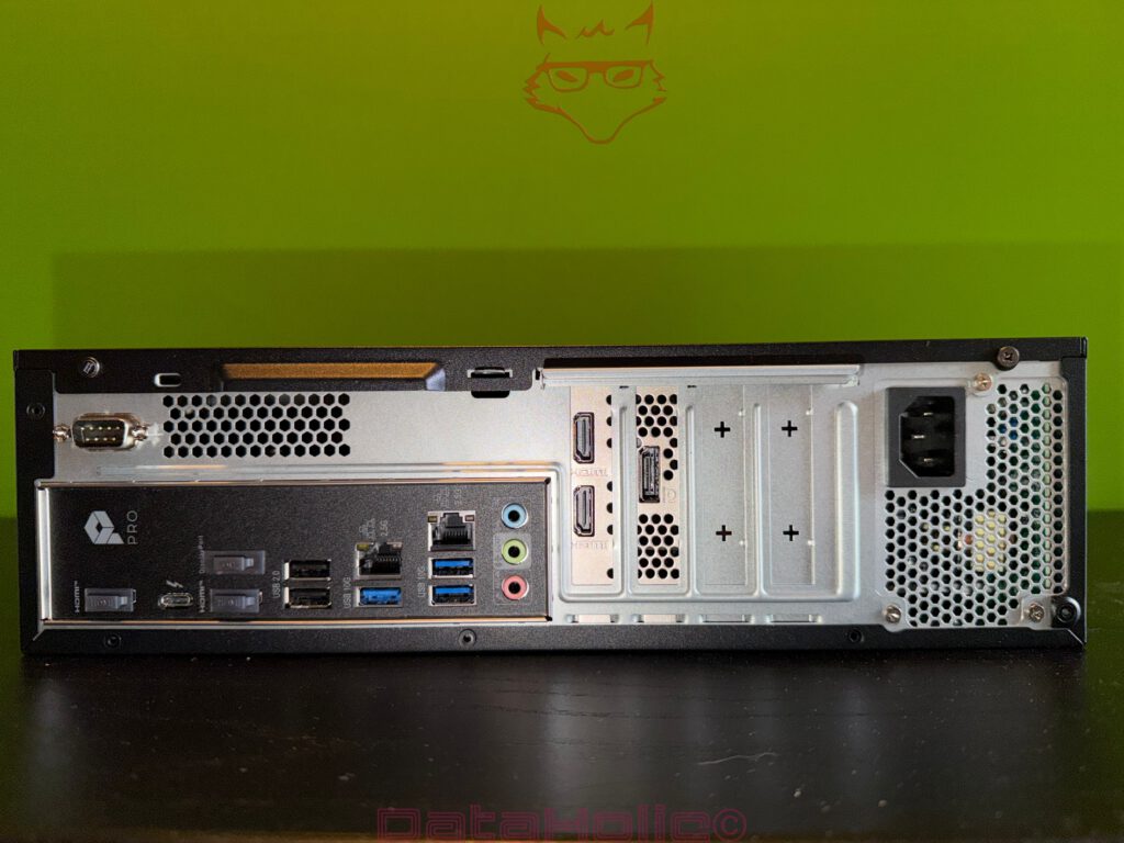 Dazu kommt ein weiterer, kleiner Punkt: Kompakt ist der PRO DP80 ohne Frage, ultramini ist er nicht. Wer die Maße eines NUC-artigen Mini-PCs erwartet, landet hier in einer deutlich erwachseneren Größenordnung. Genau darin liegen seine Vorteile, aber eben auch eine realistische physische Präsenz. Der DP80 ist kein Rechner, der hinter jedem Monitor verschwindet, als wäre nichts da. Er spart Platz, bleibt aber ein Desktop.