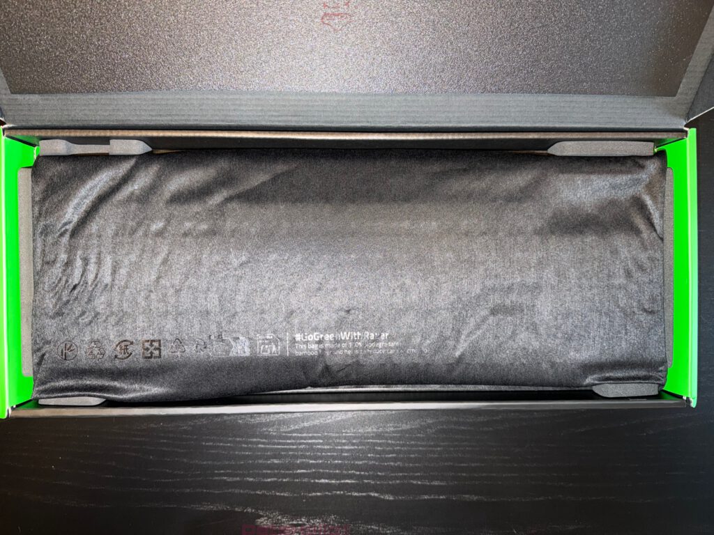 Der Lieferumfang bleibt passend zum Produkt zurückhaltend. In der Verpackung liegen die Tastatur selbst, ein abnehmbares, ummanteltes USB-A-auf-USB-C-Kabel und die üblichen Unterlagen. Eine Handballenauflage fehlt, ebenso ein externer Dongle-Extender. Das ist funktional kein Drama, vor allem weil die Bauhöhe sehr niedrig bleibt, aber im Preissegment wirkt diese Reduktion nicht vollkommen großzügig. Offiziell bestätigt Razer außerdem, dass kein Wrist Rest beiliegt.