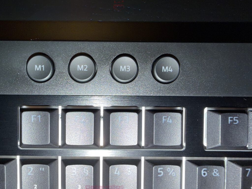 Hinzu kommen Hypershift und Makrofunktionen. Razer nennt Hypershift explizit als Bestandteil von Synapse 4, also die Möglichkeit, einer Taste temporär eine zweite Funktionsebene zuzuweisen. Dazu unterstützt das Board On-the-fly-Makroaufzeichnung und besitzt vier dedizierte Makrotasten. Für Arbeitsabläufe, wiederkehrende Kommandos oder Streaming-Steuerung ist das alles andere als Nebensache. Es hebt die Tastatur über den Status eines reinen Eingabefelds hinaus.