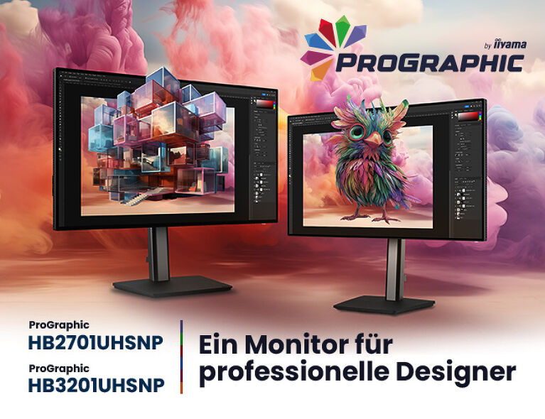 Neufahrn bei Freising, 19. November 2025 – Mit den neuen ProGraphic-Monitoren HB2701UHSNP-B1 (27”) und HB3201UHSNP-B1 (32”) präsentiert iiyama zwei High-End-Displays, die speziell für Designer, Fotografen und Content-Ersteller entwickelt wurden. Sie verbinden kompromisslose Farbgenauigkeit, tiefen Kontrast und maximale Ergonomie.