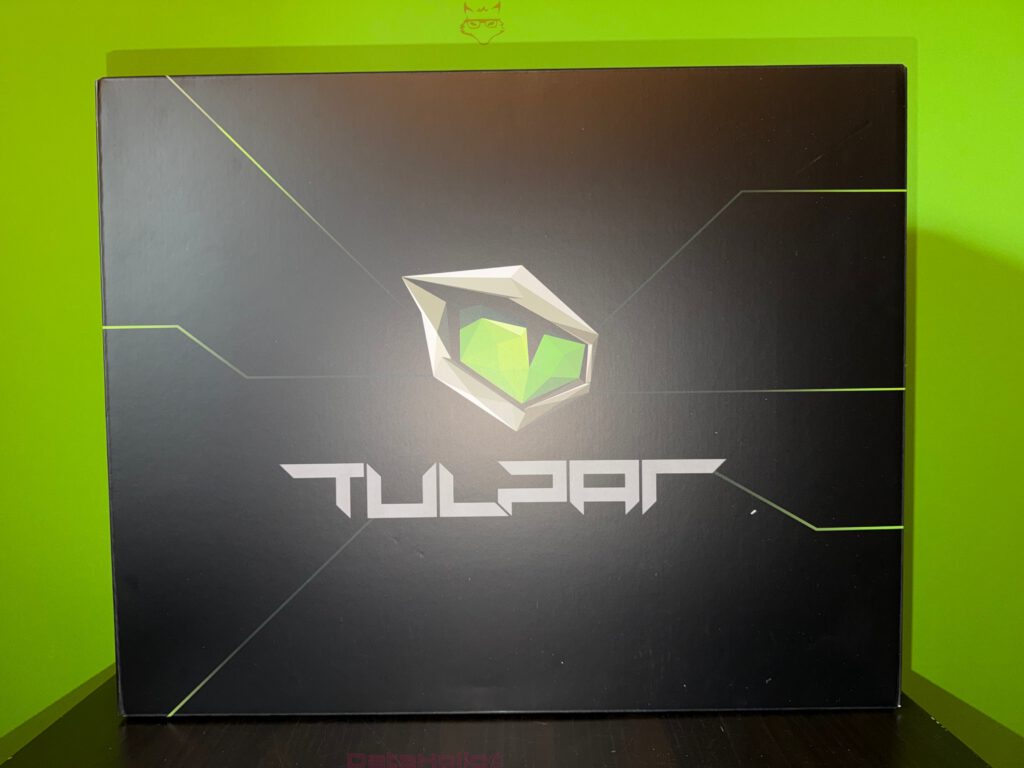 The outer packaging appears substantial and deliberately understated. A dark color scheme dominates, accented by geometric green lines reminiscent of circuit traces. This is not merely decorative; it serves as a visual cue: this is about hardware, not lifestyle. The Tulpar logo is centrally positioned, above it the angular helmet emblem, below it the brand name in a futuristic, straight-lined font. The surface remains otherwise calm, which even offers practical benefits: fewer glossy lacquered areas, less sensitive coatings, fewer visible micro-scratches during transport.