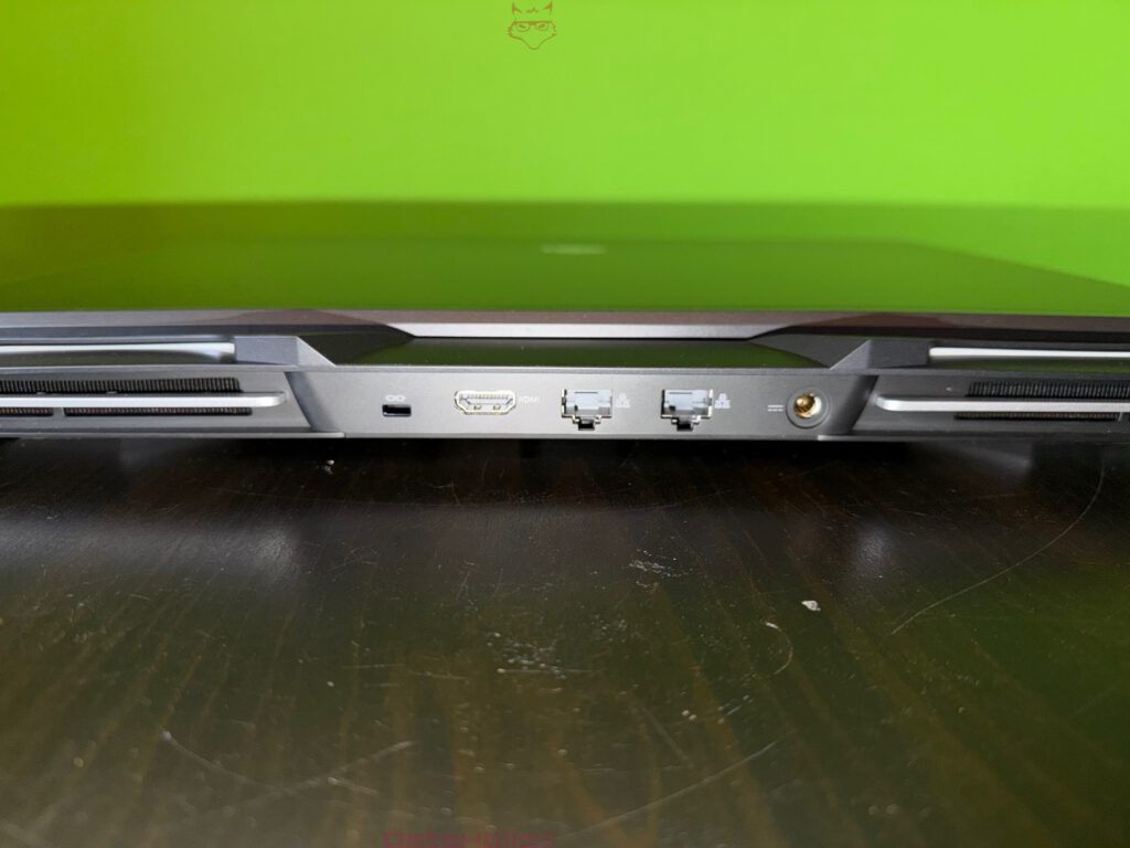 Dual LAN on a notebook is rare and clearly signals workstation or enthusiast orientation. It can serve separate networks, link aggregation in specialized scenarios, or laboratory environments. For unboxing purposes, the layout logic is decisive: heavy cables (LAN, power) are positioned at the rear, minimizing interference. HDMI placement at the back supports desktop-replacement usage, keeping monitor cables out of the workspace.