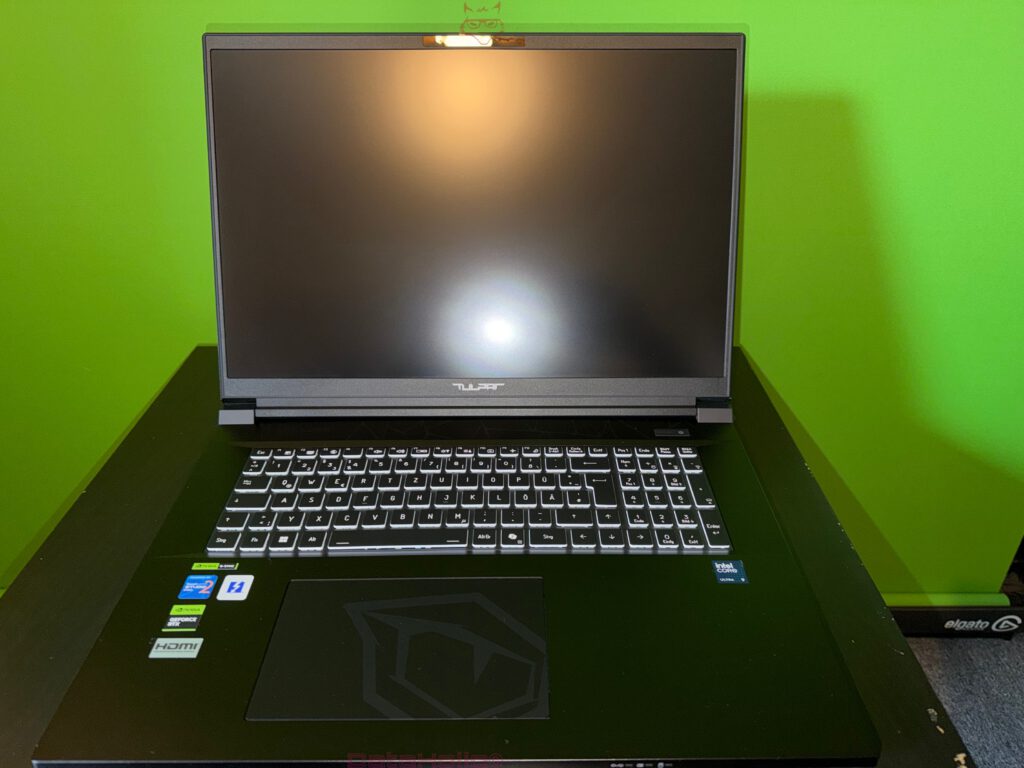 Externally, the Tulpar S8 V1.2 presents a matte, dark surface with a discreet emblem centered on the lid. The finish appears robust and more functional than glamorous. This suits a performance notebook: matte surfaces conceal micro-scratches more effectively and reflect less light, which can be advantageous under studio lighting or in bright environments.