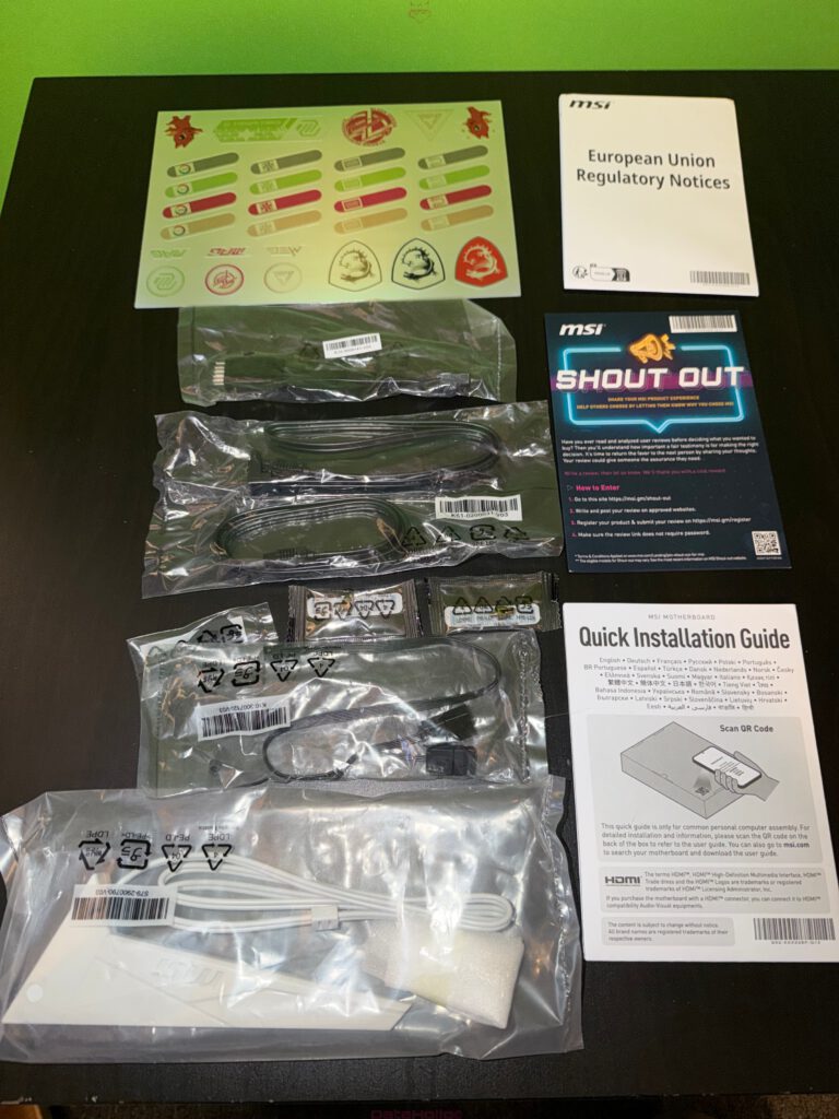 Beim Auspacken der einzelnen Beutel fällt auf, dass MSI eine klare Linie fährt: Zubehör soll praxisnah und unmittelbar einsatzbereit sein.