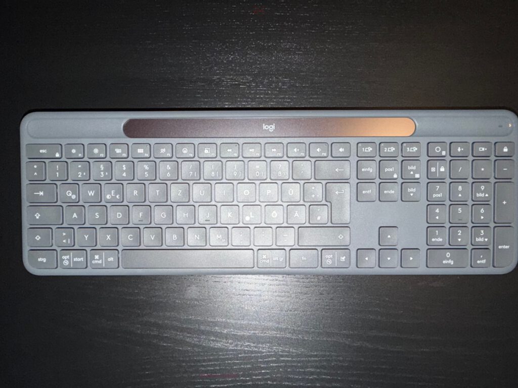 There’s no cable, no dongle, no plastic wrap. A conscious omission — because a solar-powered keyboard needs neither charging cable nor psychological reassurance. Logitech’s design philosophy is clear: less clutter, more readiness.