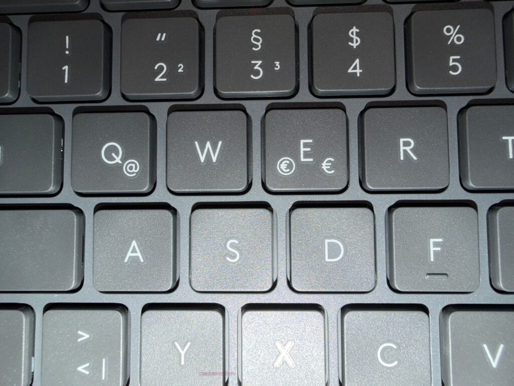 On the E key, two € symbols accompany the standard letter — a subtle reminder of the keyboard’s regional customization. Small, practical details like this show Logitech’s understanding of real-world use.